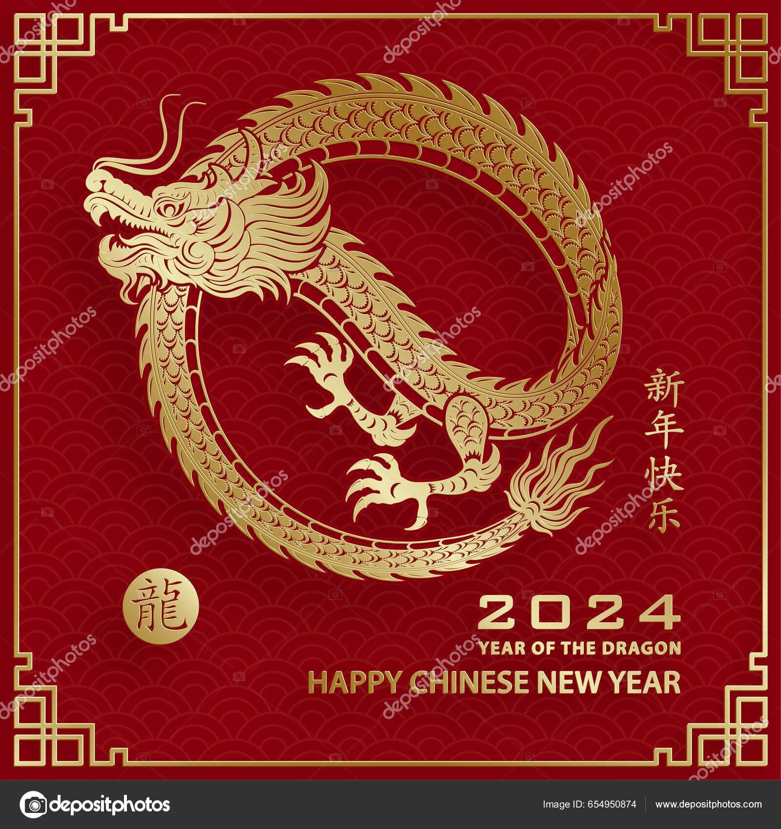 Source : www.amazon.comHappy Chinese New Year 2024 Dragon Zodiac Sign Gold Paper Stock