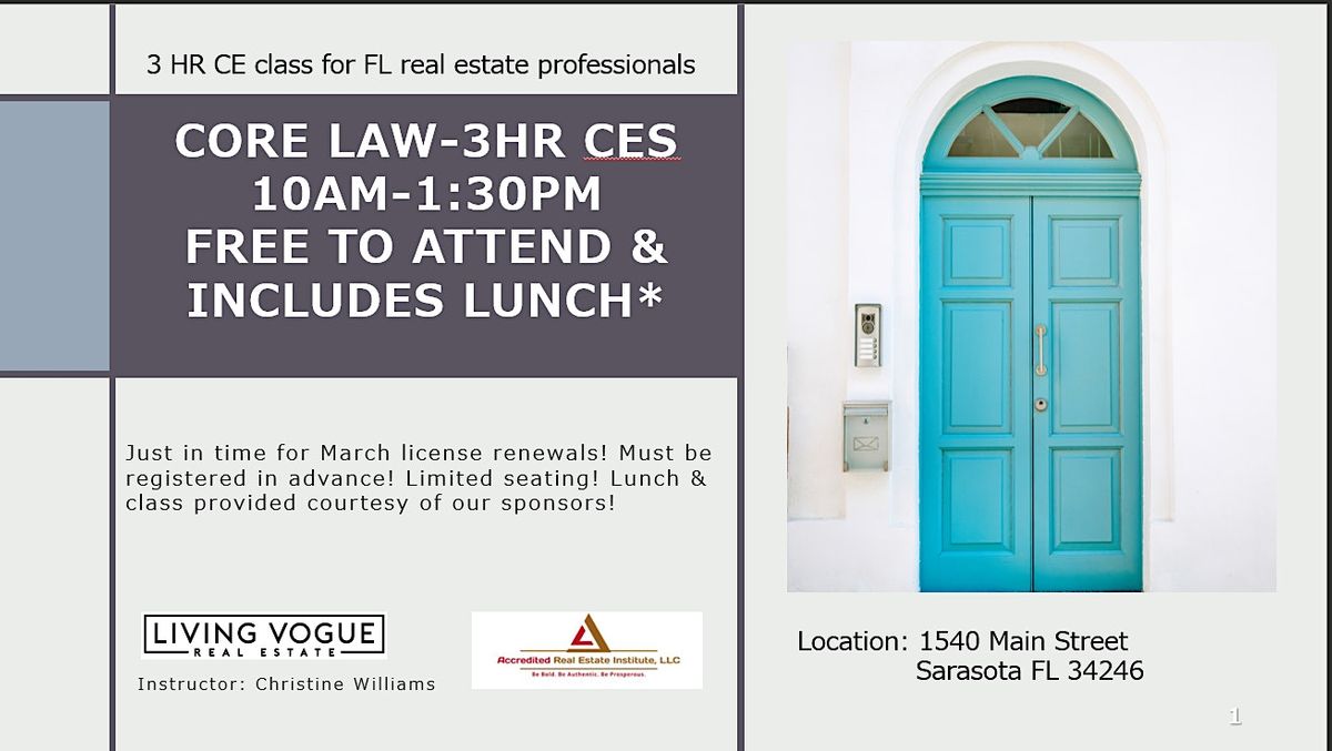 Source : www.facebook.comCore Law 3HRs of continuing education for FL real estate
